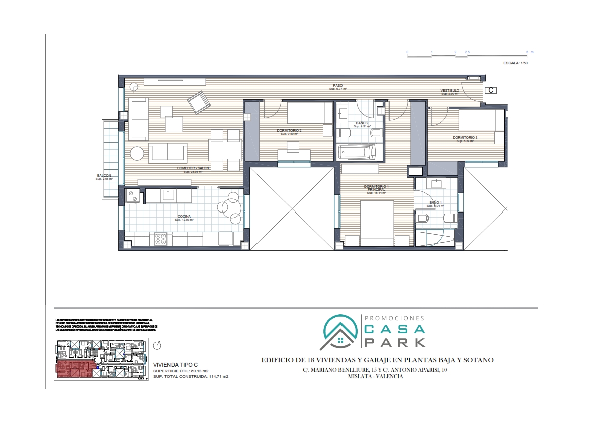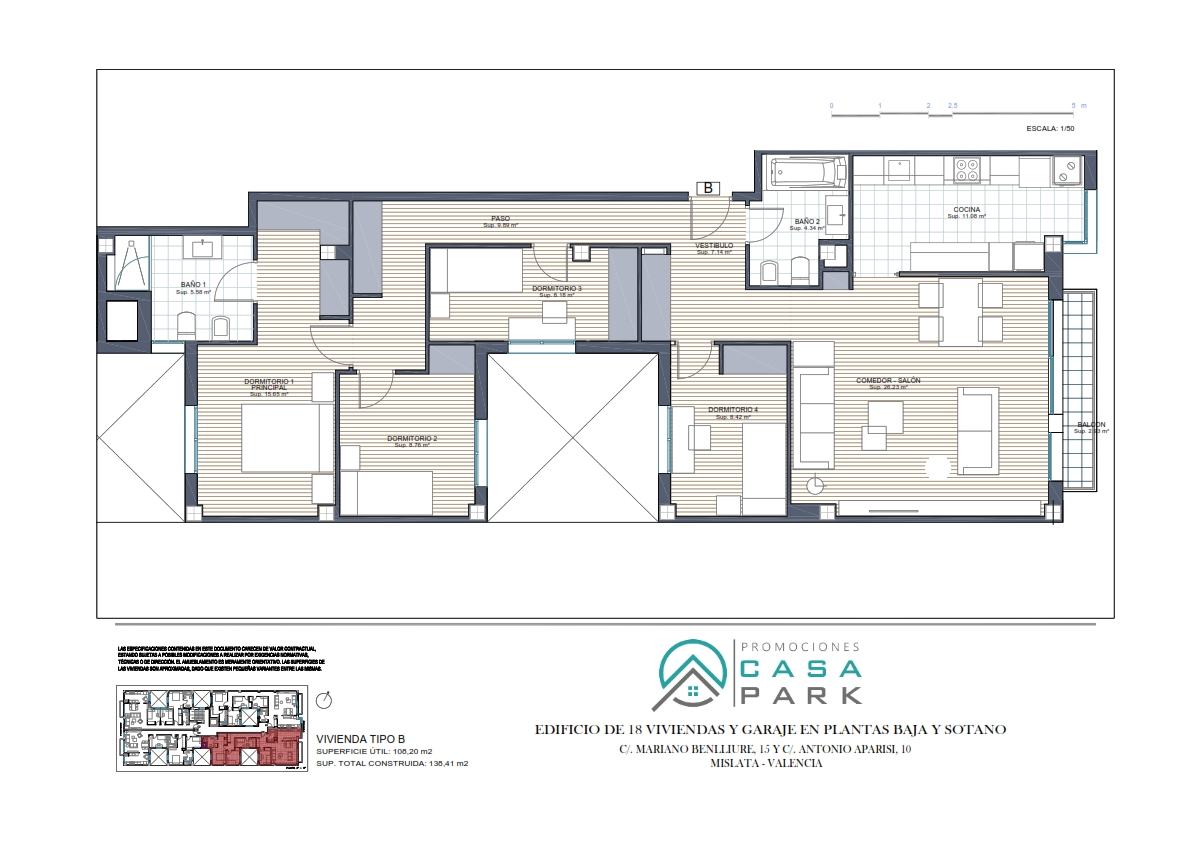 18 Viviendas de 2, 3 y 4 dormitorios.